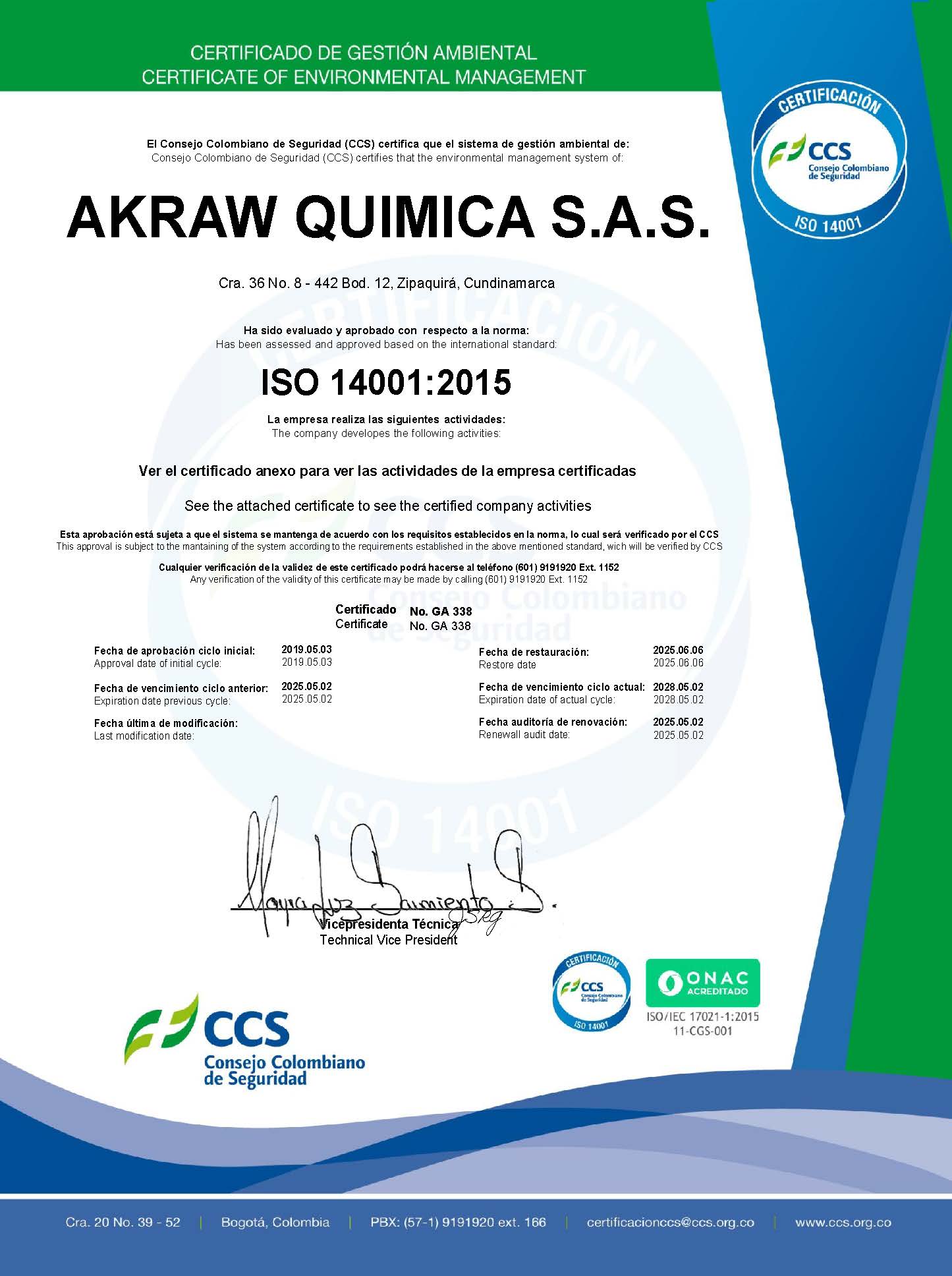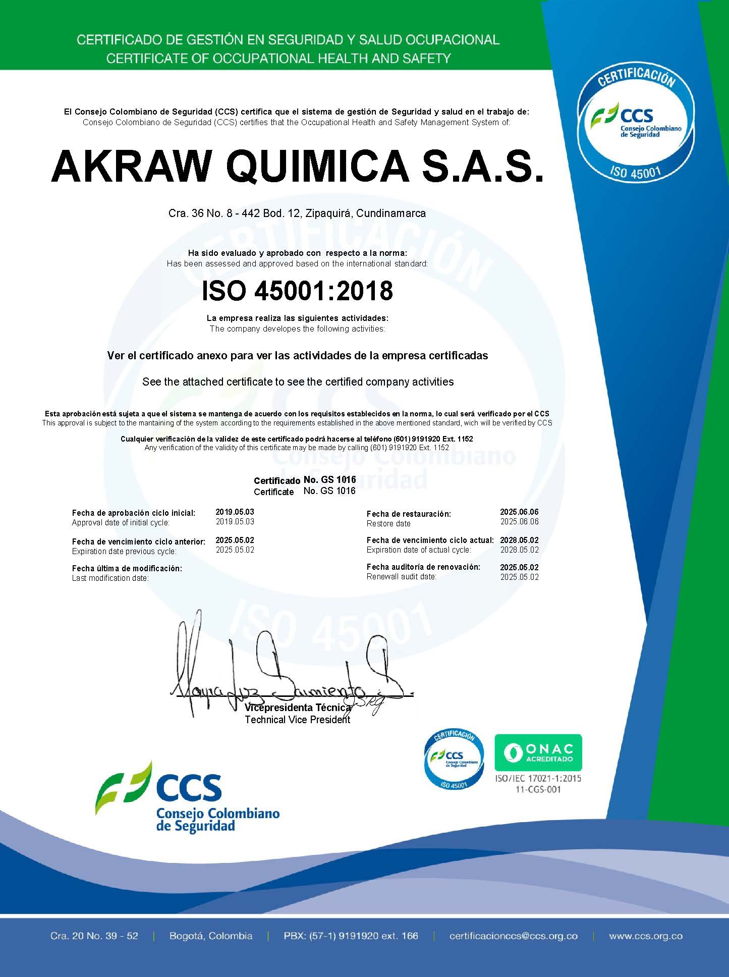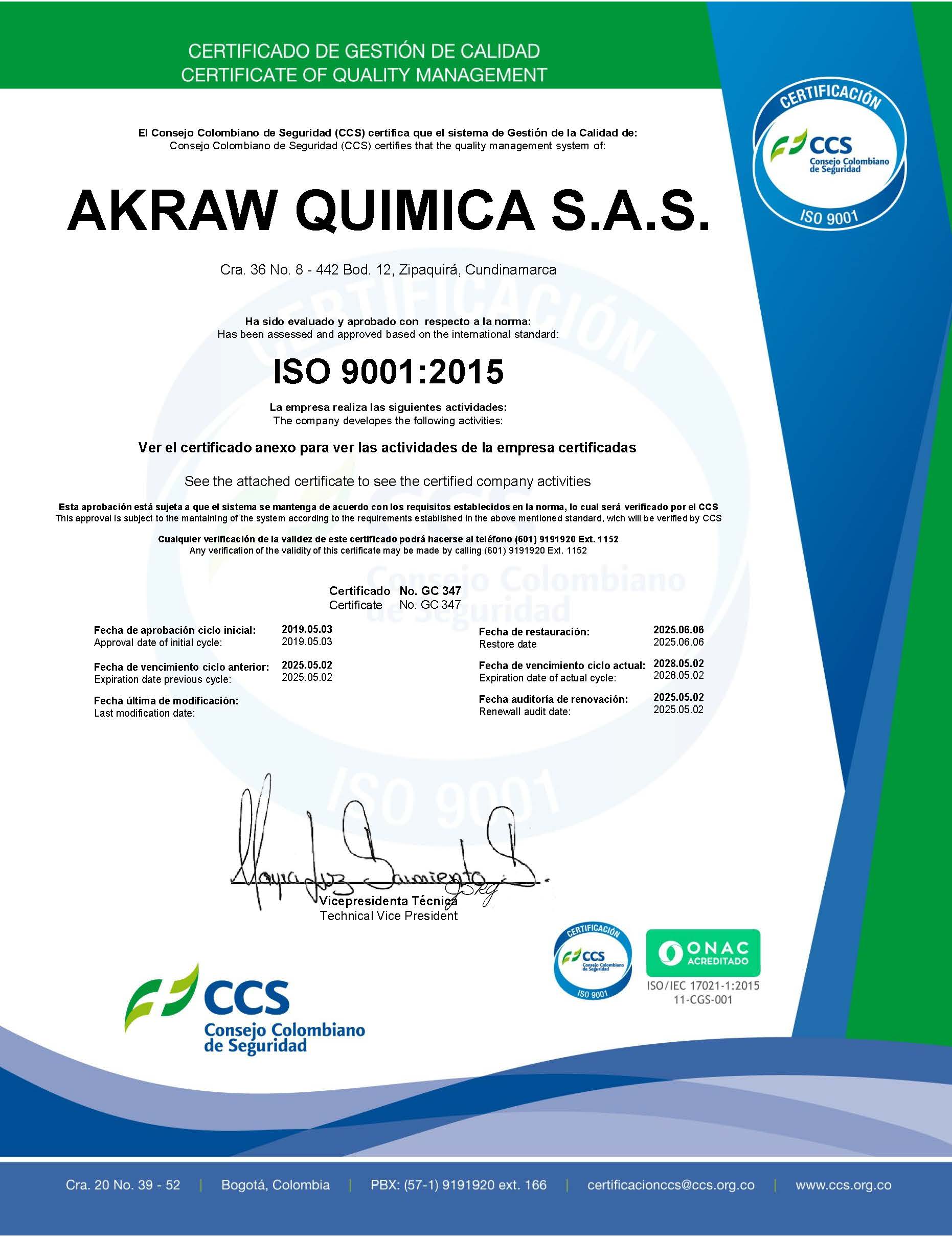 COPYRIGHT © Prohibida su reproducción total o parcial akrawquimica.com y productos Akraw® una marca registrada de Akraw Química S.A.S. Todos los derechos reservados. | Aviso de privacidad | Política de Tratamiento de Datos